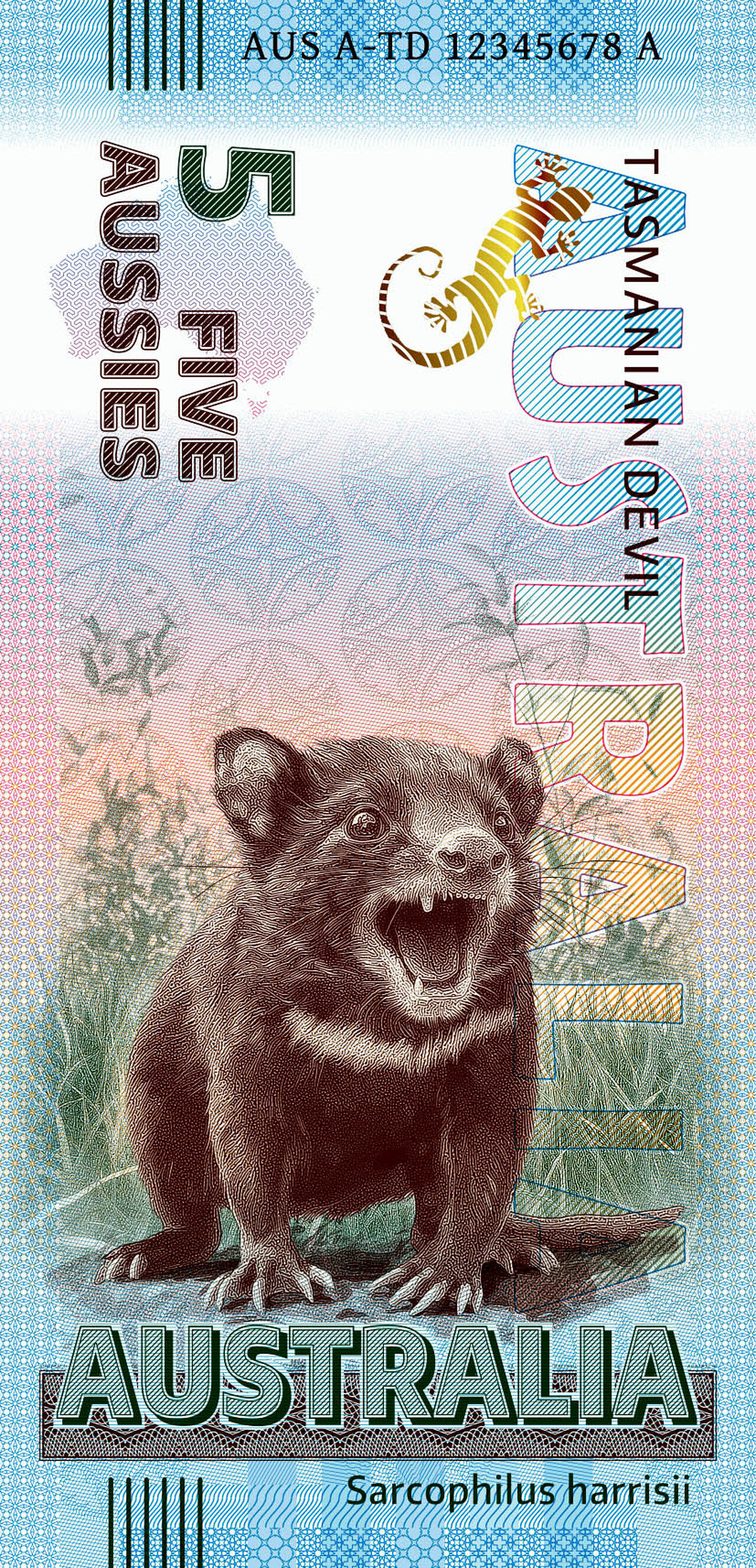 Obverse: Tasmanian devil, stylized lizard, map of Australia