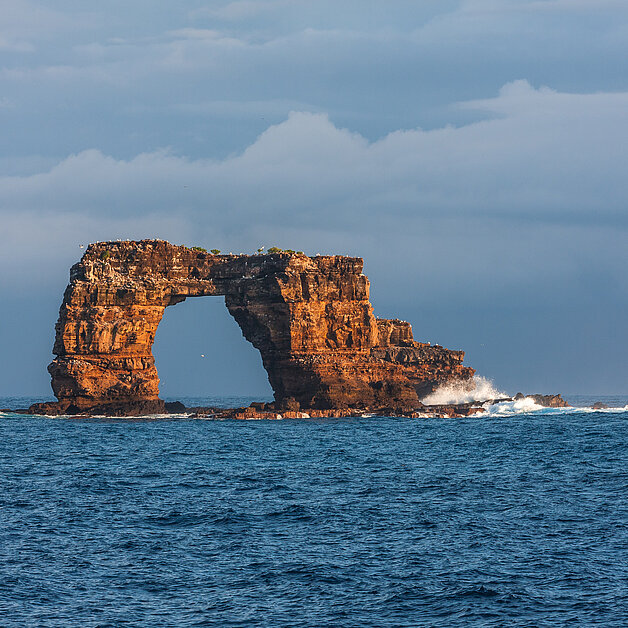 Many animal species, cities or geographical landmarks were named after Darwin, such as “Darwin's Arch” off the northernmost Galápagos island, Isla Darwin. The rock formation on a plateau in the ocean is a popular tourist destination. It was about 18 meters (59 ft) high, but collapsed in 2021 due to erosion. Since then, it has also been called “The Pillars of Evolution” (Spanish: Los Pilares de la Evolución).